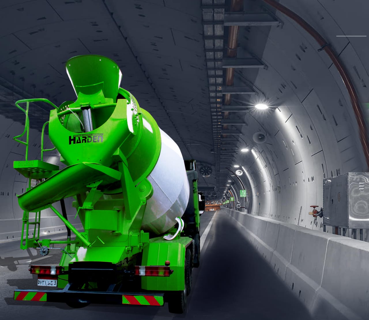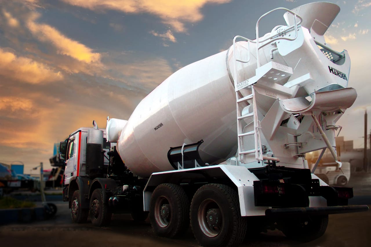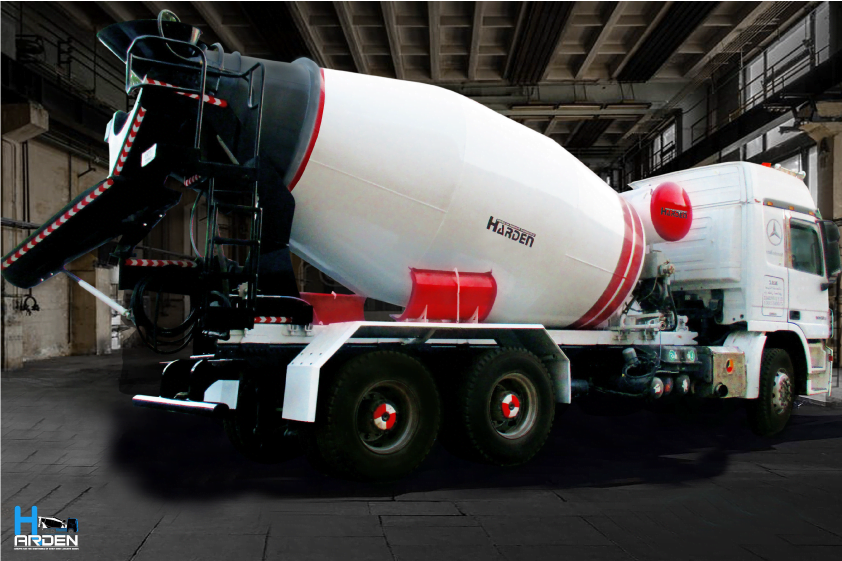 The factory produced concrete mixers loaded on trucks with different loading capacities 8 m – 10 m – 12 m